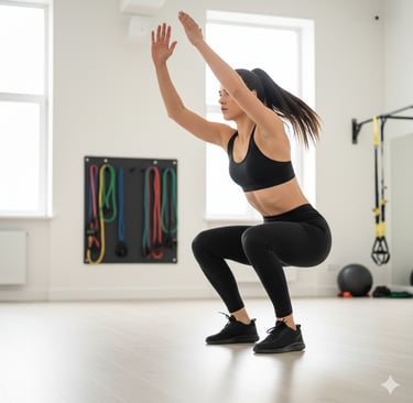 Squats are a foundational movement pattern that strengthens the lower body while improving balance and mobility. Performing squats with proper form—feet shoulder-width apart and chest lifted—engages the glutes and helps improve functional strength.