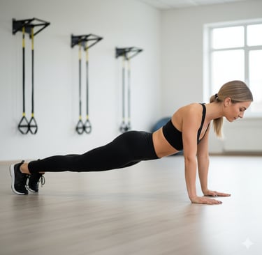 Tip: Start with knee push-ups or incline push-ups if you’re a beginner.
